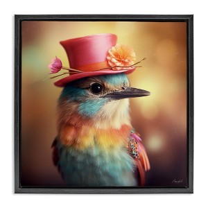 Stupell Industries Pastel Bird in Hat Floating Frame Canvas Art