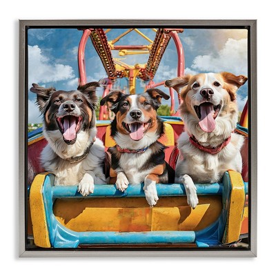 Stupell Industries Patterned Dogs & Flowers Floating Frame Canvas Art