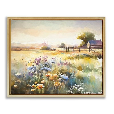 Stupell Industries Peaceful Pasture Meadow Floating Frame Canvas Art, Gold, 21" x 17"