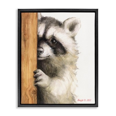 Stupell Industries Peering Raccoon Watercolor Floating Frame Canvas Art, Gold, 17" x 21"