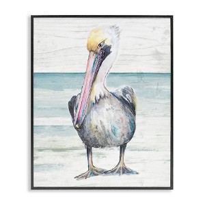 Stupell Industries Pelican Bird Standing on Beach Framed Giclee Art