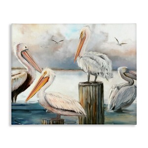 Stupell Industries Pelicans Perched Cloudy Horizon Canvas Art