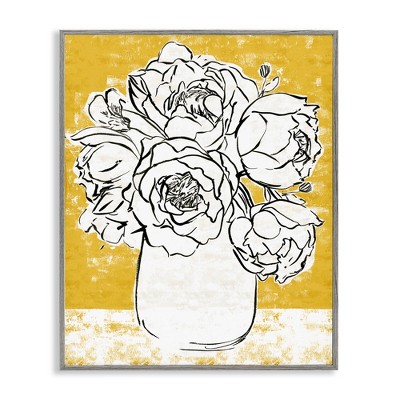 Stupell Industries Peony Sketch Bouquet Contrasted Distressed Yellow Canvas Art