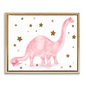 Stupell Industries Pink Dinosaur with Gold Stars Floating Frame Canvas Art, Gold, 21" x 17"