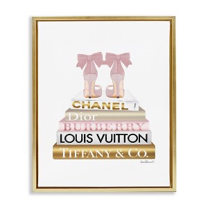Stupell Industries Pink Gold Heels Bookstack Floating Frame Canvas Art