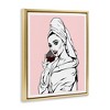 Stupell Industries Pink Vampire Fashionista Drinking Wine Floating Frame Canvas Art