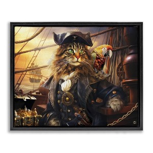 Stupell Industries Pirate Cat on Ship Floating Frame Canvas Art