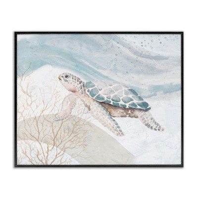 Stupell Industries Pleasant Aquatic Blue Sea Turtle Swimming Ocean Plants Framed Giclee Art