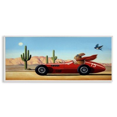 Stupell Industries Race Car Bunny Driving Desert Canyon Framed Giclee Art, Gray, 30" x 13"