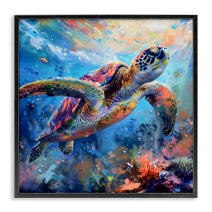 Stupell Industries Rainbow Sea Turtle & Bubbles Framed Giclee Art