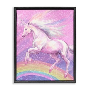 Stupell Industries Rainbow Unicorn Scene Floating Frame Canvas Art