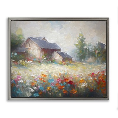 Stupell Industries Red Covered Bridge Woodland Creek Floating Frame Canvas Art