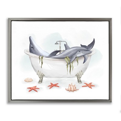 Stupell Industries Relaxing Dolphins Swimming Bathtub Nautical Starfish Floating Frame Canvas Art, Gold, 31" x 25"