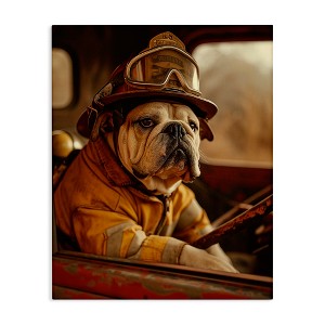 Stupell Industries Rustic Bulldog Fireman Canvas Art