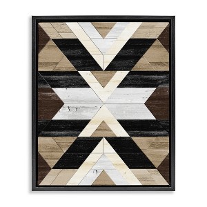 Stupell Industries Rustic Linear Aztec Shapes Floating Frame Canvas Art