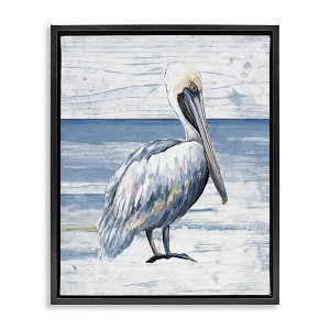 Stupell Industries Rustic Plank Pattern Pelican Floating Frame Canvas Art