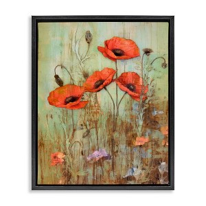 Stupell Industries Rustic Red Poppies Floating Frame Canvas Art