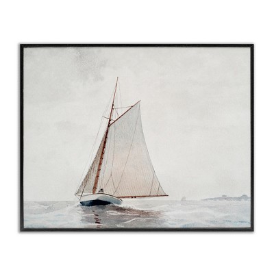 Stupell Industries Sailboat Foggy Weather Clouds Ocean Waves Crashing Floating Frame Canvas Art, Gray, 31" x 25"