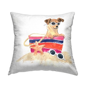 Stupell Industries Sandy Dog in Beach Bag Outdoor Decorative Throw Pillow, 18 x 18