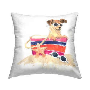 Stupell Industries Sandy Dog in Beach Bag Indoor Decorative Throw Pillow, 18 x 18