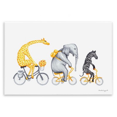 Stupell Industries Savanna Animals Riding Bikes Bicycles Yellow Accent Wall Plaque Art, 19" x 13"