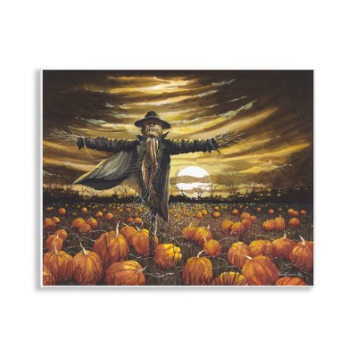 Stupell Industries Scarecrow in Pumpkin Field Framed Giclee Art, Black, 14" x 11"