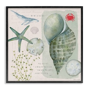 Stupell Industries Sea Shell Inspirational Collage Framed Giclee Art, Black, 12" x 12"