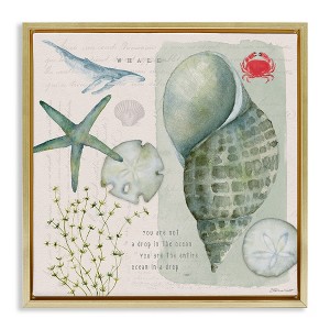 Stupell Industries Sea Shell Inspirational Collage Floating Frame Canvas Art, Gold, 18" x 18"