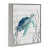 Stupell Industries Sea Turtle Ocean Botanicals Rustic Plank Pattern Framed Giclee Art, Gray, 24" x 24"