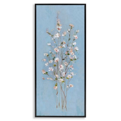 Stupell Industries Simple Botanical Floral Stems Pattern Blue Background Framed Giclee Art, Gray, 10" x 24"