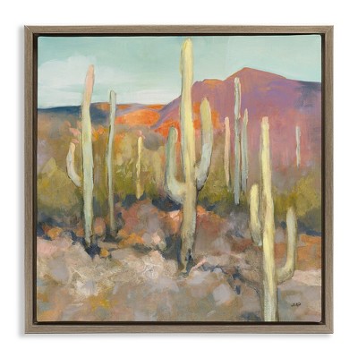 Stupell Industries Soft Cactus Desert Landscape Floating Frame Canvas Art, Gold, 18" x 18"