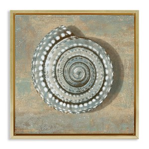 Stupell Industries Spiral Shell Beach Objects Floating Frame Canvas Art, Gold, 18" x 18"