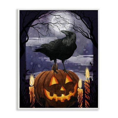 Stupell Industries Spooky Halloween Night Sky Crow Jack-o'-lantern Full Moon Canvas Art, 24" x 30"