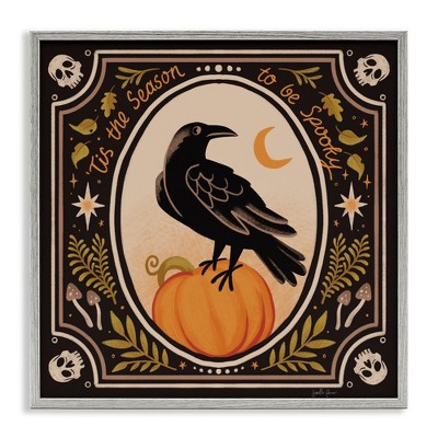 Stupell Industries Spooky Season Black Crow Framed Giclee Art, White, 12" x 12"
