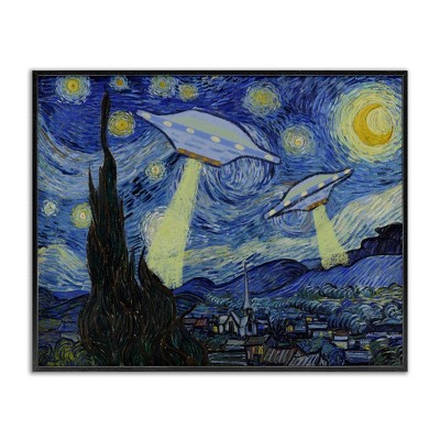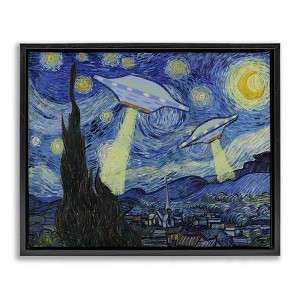 Stupell Industries Starry Night Classic Alien UFOs Floating Frame Canvas Art