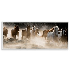 Stupell Industries Striking Horse Herd Galloping Framed Giclee Art, White, 30" x 13"