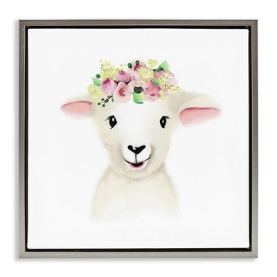 Stupell Industries Sunlight Lamb in Flowers Framed Print Under Glass Art