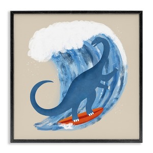 Stupell Industries Surfing Dino Brontosaurus Framed Giclee Art