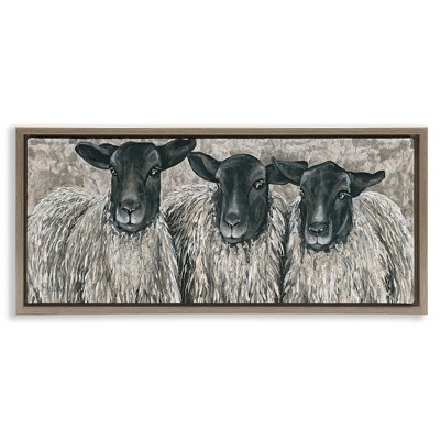 Stupell Industries Three Sheep Trio Portrait Floating Frame Canvas Art, Gray, 25" x 11"