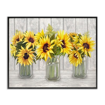 Stupell Industries Three Sunflower Bouquets Country Planks Still Life Canvas Art, 30" x 24"