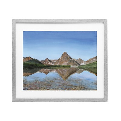Our Framed Print Under Glass is a modern way to display art with a crisp, clean finish. A digitally printed paper is framed with a white mat under durable PETG plastic. The bevel cut mat is made of paper pulp mat board. The frame is constructed from real wood with a wrapped finish. It includes a pre-installed sawtooth hanger for easy hanging. Available in black, birch, gray and white finishes.