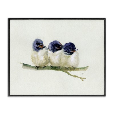 Stupell Industries Trio of Baby Swallows Birds Perched on Branch Framed Giclee Art, White, 14" x 11"