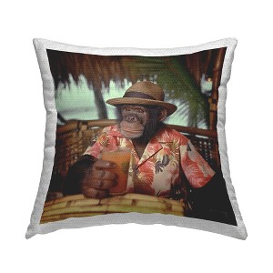 Stupell Industries Tropical Vacation Monkey Outdoor Decorative Throw Pillow, 18 x 18