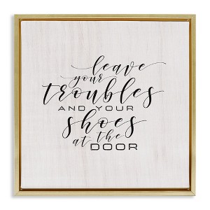 Stupell Industries Troubles & Shoes at Door Floating Frame Canvas Art, Gold, 25" x 25"