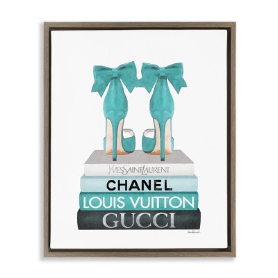 Stupell Industries Turquoise Bow Heels on Books Floating Frame Canvas Art, Gray, 17" x 21"