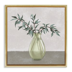 Stupell Industries Vase And Plant Neutral Grey Floating Frame Canvas Art, Gold, 25" x 25"