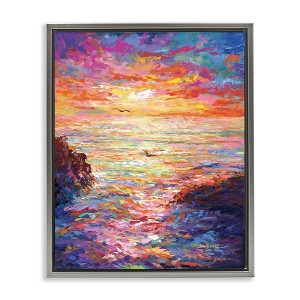 Stupell Industries Vibrant Abstract Ocean Sunset Floating Frame Canvas Art