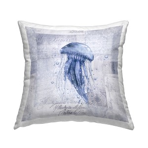 Stupell Industries Vintage Collaged Jellyfish Indoor Decorative Throw Pillow, 18 x 18