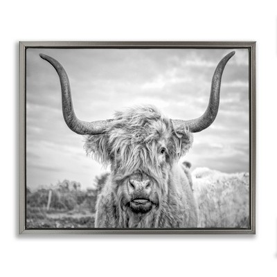 Stupell Industries Vintage Cow In Pasture Floating Frame Canvas Art, Gray, 21" x 17"