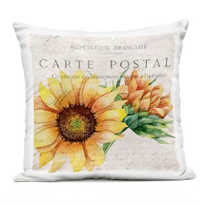 Stupell Industries Vintage French Words Sunflower Floral Calligraphy Outdoor Decorative Throw Pillow, 18 x 18